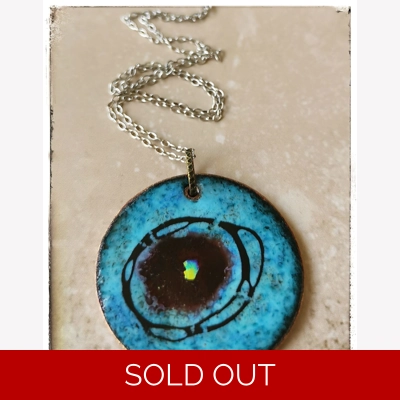 This gorgeous eye-catching pendant is 3.2cm round. It comes on a 20 inch silver chain.