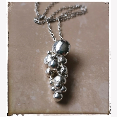Unusual bubble cluster solid silver pendant with 18inch silver trace chain.