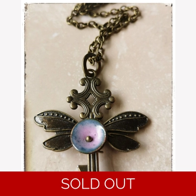 Winged key enamel pendant