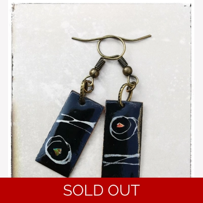 These pretty little earrings are handcrafted in copper and powdered glass. Heated in my kiln they transform into unique pieces or wearable art.