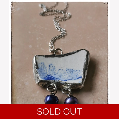 Scottish beach pottery encased in a frame of lead free silver solder.